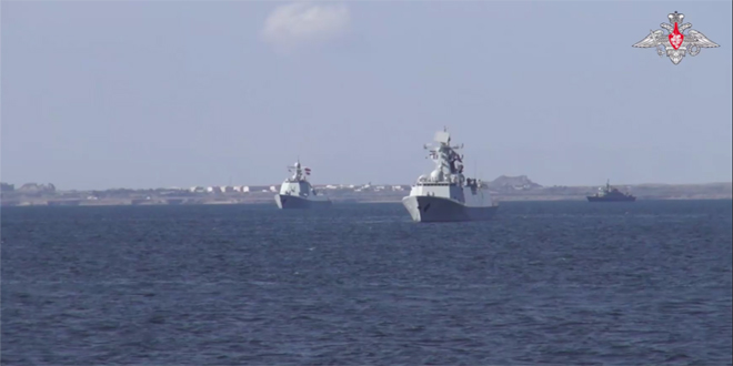 ونقلت وكالة سبوتنيك عن وزارة الدفاع الروسية قولها في بيان: “بدأت مفرزة من سفن أسطول المحيط الهادئ التابع للبحرية الروسية مكونة من طراد الحراسة الصاروخي (فارياغ) والفرقاطة (مارشال شابوشنيكوف)، بتنفيذ المهام العملية للمناورات البحرية الدولية المشتركة مع سفن تابعة للبحرية الإيرانية والصينية”.