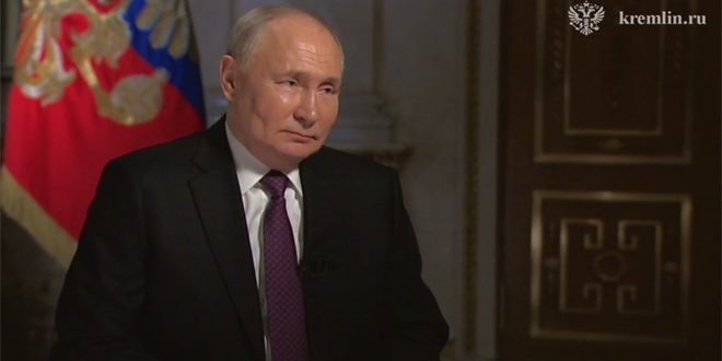 وقال بوتين في مقابلة على قناة “روسيا1” ووكالة “نوفوستي” إن بلاده مستعدة لحرب نووية إذا تعلق الأمر بوجود الدولة الروسية أو إلحاق الضرر بسيادتها واستقلالها، مستبعداً رغم ذلك الصدام النووي المباشر مع الولايات المتحدة أو غيرها من الدول الغربية.