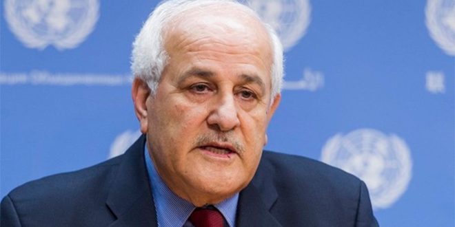 دعا مندوب فلسطين الدائم لدى الأمم المتحدة رياض منصور المجتمع الدولي إلى اتخاذ إجراء عاجل لوقف حرب الإبادة الجماعية التي يشنها الاحتلال الإسرائيلي ضد الشعب الفلسطيني في قطاع غزة منذ السابع من تشرين الأول الماضي.