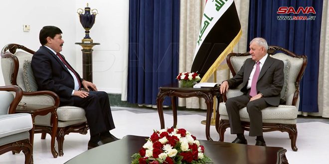 بحث الرئيس العراقي عبد اللطيف جمال رشيد مع سفير سورية في بغداد صطام جدعان الدندح اليوم سبل توطيد التعاون بين البلدين الشقيقين.