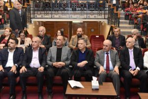 أما الندوة الثقافية التي أقيمت عقب افتتاح المهرجان بعنوان ” فلسطين في أدبنا المعاصر”، فتحدث فيها الدكتور محمد عامر المارديني وزير التربية عن حضور القضية الفلسطينية في الأدب والشعر والثقافة، وتكريسها رمزاً وجدانياً ونضالياً، لافتاً إلى حضور فلسطين في المناهج التربوية السورية.