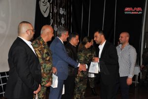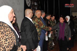 حضر التكريم محافظ دمشق المهندس محمد طارق كريشاتي، ومدير مديرية شؤون الشهداء والجرحى والمفقودين اللواء بسام بري، ورئيسة الهيئة السورية لشؤون الأسرة سمر السباعي وفعاليات تربوية.