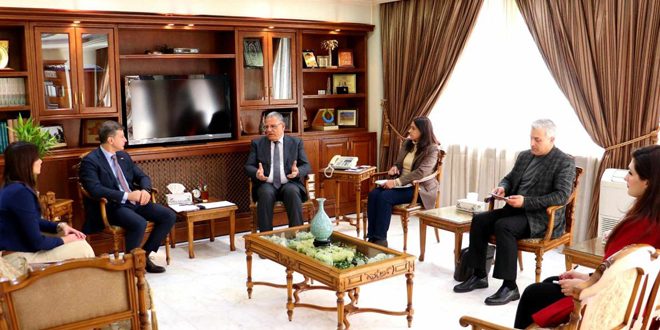 بحث وزير الزراعة والإصلاح الزراعي المهندس محمد حسان قطنا اليوم مع سفير جمهورية فنزويلا البوليفارية بدمشق خوسيه غريغوريو بيومورجي موساتيس علاقات التعاون في المجال الزراعي، وتبادل المنتجات، وتفعيل الاتفاقيات الثنائية بهذا الشأن.