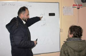 مدرس اللغة العربية أيهم سكاف أوضح أن إيصال المعلومة وترسيخها في ذهن الطالب يحتاج إلى جهد مضاعف، لافتاً إلى أنه يركز على تعزيز ملكة النطق لدى ذوي الإعاقة السمعية ويبتعد عن استخدام لغة الإشارة وخاصة الذين لديهم بقايا سمعية، كما تتم الاستعانة بمدرسي النطق لتحسين مخارج الأحرف قدر الإمكان.