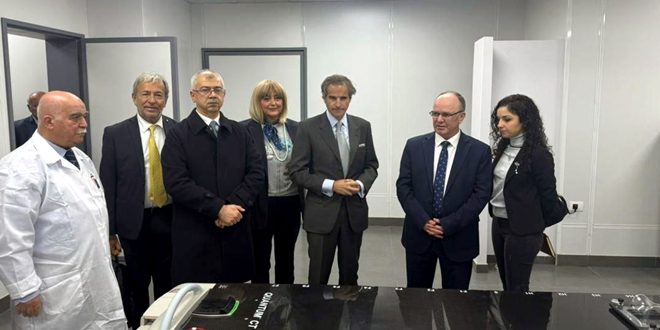 بحث وزير التعليم العالي والبحث العلمي الدكتور بسام إبراهيم خلال لقائه اليوم مع مدير عام الوكالة الدولية للطاقة الذرية رافائيل ماريانو غروسي والوفد المرافق له في مشفى البيروني الجامعي آفاق التعاون العلمي والصحي والعلاجات لأمراض الأورام والسرطان.