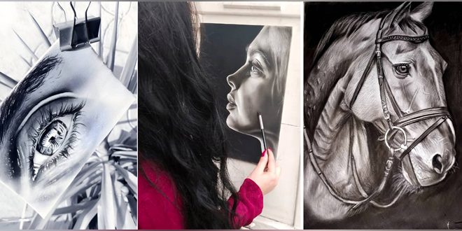 وأوضحت يوسف في حديثها لمراسلة سانا الشبابية أنها ترسم بشكل شبه يومي، حيث تقضي ساعات طويلة أمام الورقة البيضاء تتأمل تفاصيلها بدقة وعناية فائقة وتضع ملامح فكرتها الفنية في مخيلتها قبل أن تبدأ أناملها برسم خطوطها باستخدام قلم الفحم الأسود.