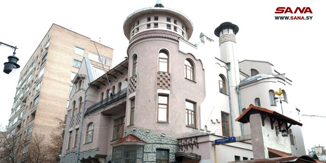 نكست سفارة الجمهورية العربية السورية في موسكو اليوم العلم الوطني على مقر السفارة تضامناً مع قيادة روسيا الاتحادية والشعب الروسي، إثر الهجوم الإرهابي الذي وقع أول أمس في مجمع كروكوس التجاري بضواحي العاصمة الروسية.