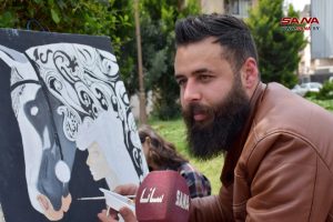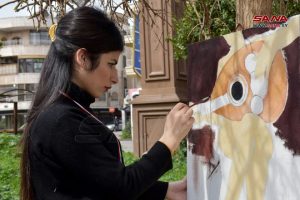 بدورها شاركت الفنانة التشكيلية آية خضور بلوحات بورتريه بالألوان الزيتية على القماش، بينما رسم الشاب أيهم بوظان حصاناً وأنثى بالأبيض والأسود ضمن لوحة أراد من خلالها إظهار رسائل عن قوة المرأة.