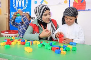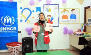 نفذ متطوعو الهلال الأحمر العربي السوري جلسة توعية للنساء حول متلازمة داون في بلدة خربة غزالة.