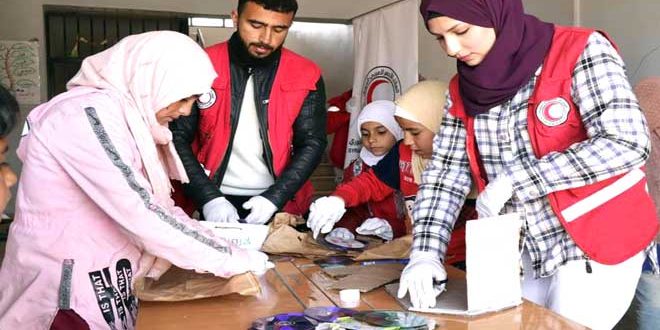 أقام متطوعو الهلال الأحمر العربي السوري وبالتعاون مع طلاب مدرسة بلدة “نامر” بريف درعا معرضاً للأشغال اليدوية من مواد قابلة للتدوير.