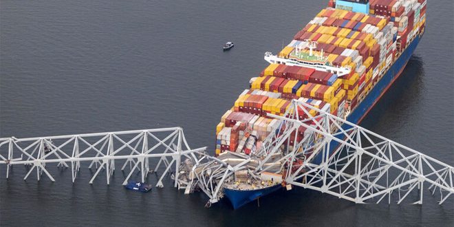 وكان الجسر الفولاذي انهار يوم الثلاثاء الماضي مخلفاً ستة قتلى من العمال عقب اصطدام سفينة شحن ضخمة بأحد أعمدة الجسر، ما أدى إلى سقوط جزء كبير منه في نهر باتابسكو، وتسبب بشل الحركة في قناة الشحن لميناء بالتيمور.