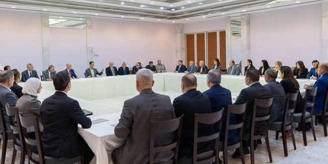 جانب من لقاء الرئيس الأسد مع أساتذة اقتصاد بعثيين
