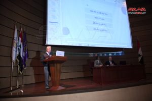 بدوره قدم معاون وزير الموارد المائية المهندس جهاد كنعان عرضاً حول الاستثمار في قطاع المياه والموارد المائية والتحديات التي تواجهه، ولا سيما الحرب على سورية وما نتج عنها من أضرار جسيمة في البنى التحتية المائية، والإجراءات القسرية أحادية الجانب التي أدت إلى تراجع القدرات البشرية واللوجستية للمؤسسات العاملة في القطاع، مشيراً إلى أن الفرصة متاحة لتحقيق الاستدامة والأمن الغذائي وإعادة التوازن إلى النظام المائي الطبيعي.