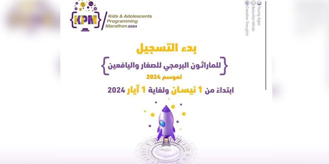 أعلنت هيئة التميز والإبداع بدء التسجيل في الماراثون البرمجي للصغار واليافعين لعام 2024، الذي تقيمه إدارة الأولمبياد العلمي بالتعاون مع مركز التعلم مدى الحياة في الجامعة الافتراضية السورية، ضمن مشروعهما للتنمية الرقمية للصغار واليافعين.