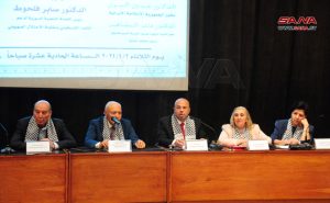 وفي ورقة بعنوان “القدس والقوانين الدولية” أوضحت أستاذة التاريخ في جامعة دمشق الدكتورة سمر بهلوان أن القدس كانت محور قرارات عديدة صدرت عن الأمم المتحدة ذات صلة بالصراع مع كيان الاحتلال الصهيوني الذي التزم بشكل صوري بالقرارات عام 1948 بعد تقديم طلب قبولها في عضوية الأمم المتحدة، مشيرة إلى التآمر الواضح بين القوى المتنفذة في الأمم المتحدة والكيان الصهيوني.