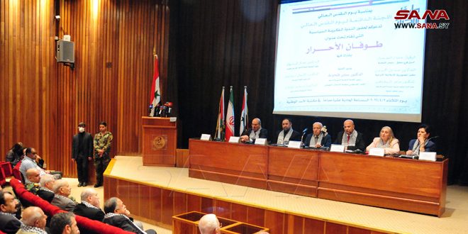 أقامت اللجنة الدائمة ليوم القدس العالمي ندوة فكرية سياسية بعنوان “طوفان الأحرار” في مكتبة الأسد الوطنية بدمشق ضمن فعاليات إحياء يوم القدس العالمي الذي يصادف يوم الجمعة الأخير من شهر رمضان المبارك.