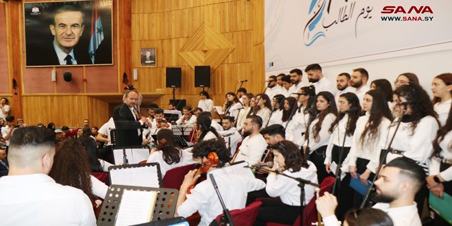 وتضمن الحفل افتتاح معرض من نتاج طلاب وطالبات معهد التربية الفنية التطبيقية والتشكيلية وفقرات فنية وأخرى مسرحية لفرقتي الكورال في معهد إعداد المدرسين والفرقة المسرحية في فرع الاتحاد الوطني لطلبة سورية.