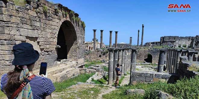 المرشد السياحي المرافق للمجموعة وسيم البحرة أشار إلى أنه من خلال خبرته في العمل التي تمتد لأكثر من 25 عاماً لمس الإعجاب الكبير الذي يبديه السياح عند زيارتهم بصرى وخصوصاً قلعتها والمسرح.