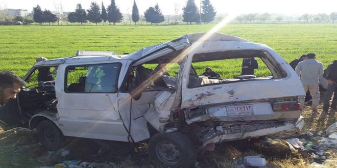 أصيب 11 شخصاً جراء تصادم مركبة شحن (قاطرة ومقطورة) بمركبة أخرى (ميكروباص) على طريق السيدة زينب مفرق المستقبل بريف دمشق.