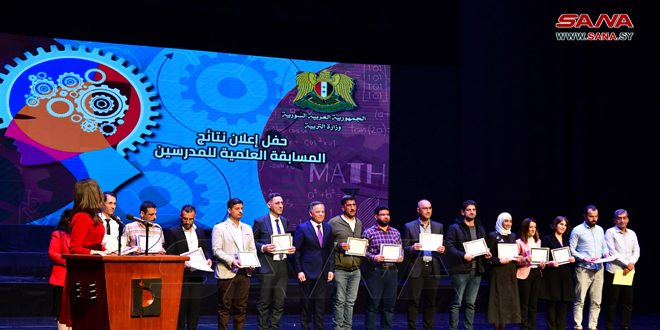أعلنت وزارة التربية اليوم أسماء الفائزين في المسابقة العلمية للمدرسين في اختصاصات (الرياضيات والفيزياء والعلوم والكيمياء والمعلوماتية)، وذلك خلال حفل تكريمي أقيم على مسرح دار الأسد للثقافة والفنون بدمشق.