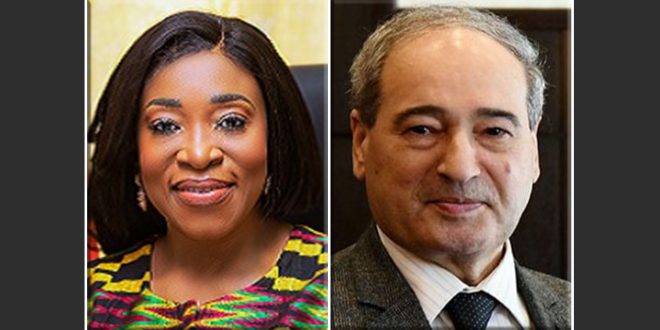 من جانبه رحب المقداد بجميع الخطوات التي تصب في تعزيز العلاقات بين البلدين الصديقين، مؤكداً أهمية التنسيق والتعاون بين سورية وغانا في المحافل والمنظمات الدولية.