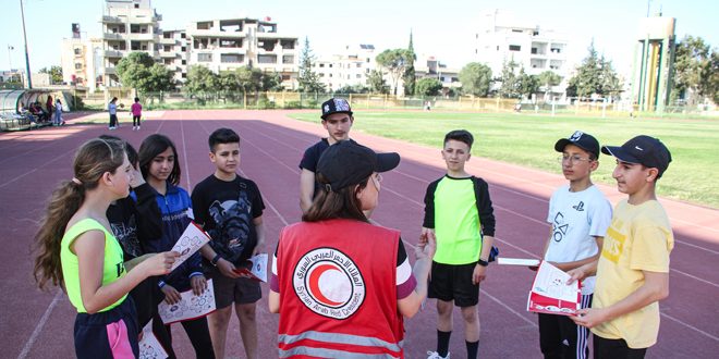 نظم متطوعو فرع الهلال الأحمر العربي السوري بالسويداء نشاطاً توعوياً بمناسبة يوم الصحة العالمي، وذلك على أرض الملعب الصناعي بمدينة المزرعة الرياضية.