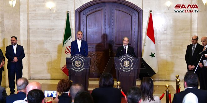 وقال المقداد خلال مؤتمر صحفي اليوم مع نظيره الإيراني حسين أمير عبد اللهيان في مبنى وزارة الخارجية: لقاؤنا يأتي بعد الجريمة الإرهابية والحادث الخطير جدا المتمثل بالعدوان الإسرائيلي على القنصلية الإيرانية في دمشق والذي انتهك الكيان من خلاله كل القيم التي قامت عليها البشرية، حيث لم تترك النازية الصهيونية أي جريمة ارتكبت في الحربين العالميتين الأولى والثانية إلا وارتكبتها، مشيرا إلى أن هذا الكيان الصهيوني الفاشي القائم على الكراهية والحقد والعدوان لم يكتف بالجرائم التي يقترفها يوميا بحق الشعب الفلسطيني والتي راح ضحيتها في قطاع غزة منذ بدء عدوانه عليه قبل ستة أشهر أكثر من 33 ألف شهيد، ونحو 76 ألف جريح معظمهم من الأطفال المحميين بموجب القانون الدولي والقانون الدولي الإنساني، لكنهم لم يسلموا من هذه الجرائم بل كانوا هدفاً للاحتلال الذي يرتكب إبادة جماعية بحق أهالي القطاع.