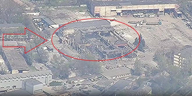 ويظهر مقطع الفيديو الذي نشرته الإدارة صاروخ إسكندر- إم يضرب مركز المبنى بدقة كما وتظهر لقطة مقربة من طائرة استطلاع روسية عدم تضرر المباني المحيطة بالورشة بينما تم تدمير المبنى الخاص بالمسيرات بشكل دقيق.