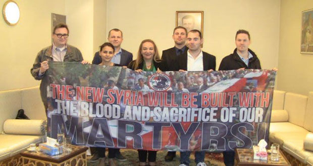 وأكد اعضاء الوفد خلال زيارة قاموا بها لمقر السفارة في بروكسل بمناسبة عيد الشهداء وقوف جبهة التضامن الاوروبي لدعم سورية جنبا إلى جنب مع الشعب السوري حتى تحقيقه النصر على التنظيمات الإرهابية المسلحة.
