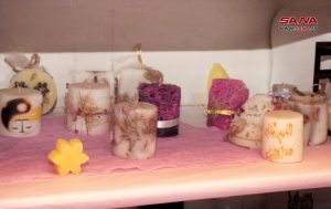 بمهارتها وشغفها بالعمل اليدوي نجحت السيدة ريم جعفر بتصنيع أعمال يدوية من خيط الكليم والشموع بدون قوالب تقليدية ضمن مشروعها المنزلي متناهي الصغر الذي أسسته بمدينة السويداء.