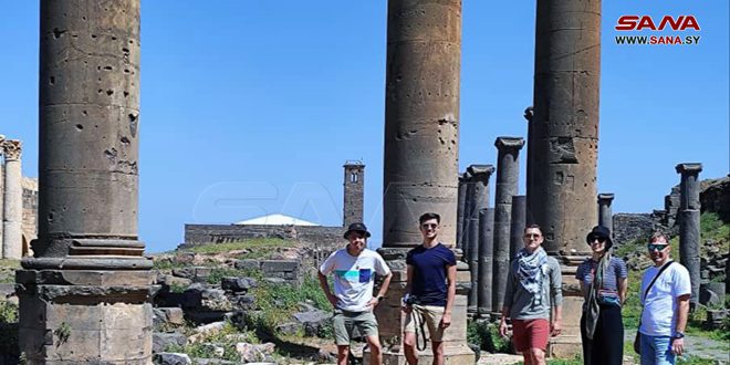 زارت مجموعة سياحية بريطانية مدينة بصرى الشام في درعا، واطلعت على أوابدها التاريخية.