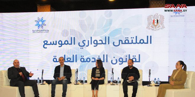 وبينت الدكتورة سفاف أن وزارة التنمية الإدارية بالتعاون مع الجهات المعنية الأخرى واتحاد نقابات العمال شكلت فرق عمل لإنجاز دراسات متخصصة في المحاور التي تناقشها جلسات الملتقى والمقترحات الناجمة عنه، لإعداد مشروع قانون الخدمة العامة الجديد.