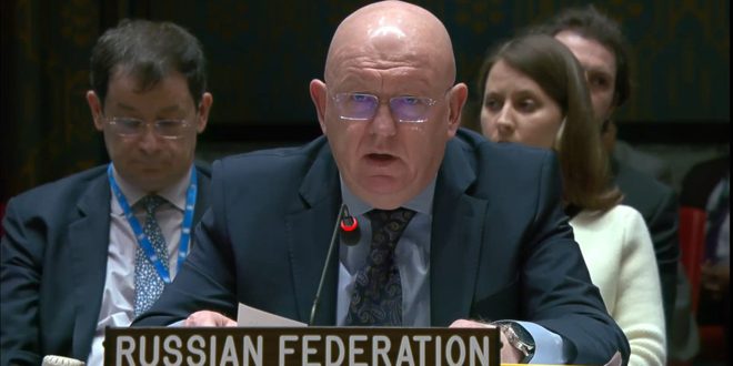 وقال نيبينزيا في كلمة خلال جلسة لمجلس الأمن الدولي: “ما نشهده اليوم هو عرض للنفاق والمعايير المزدوجة ويكاد يكون مخجلا” مضيفاً “إن الخطوات التي اتخذتها إيران كانت ردا على التقاعس المخزي لمجلس الأمن الدولي ورداً على الاعتداء الإسرائيلي الصارخ على قنصليتها في دمشق وهي ليست المرة الأولى التي تتعرض فيها سورية للاعتداء المستمر من قبل إسرائيل”.