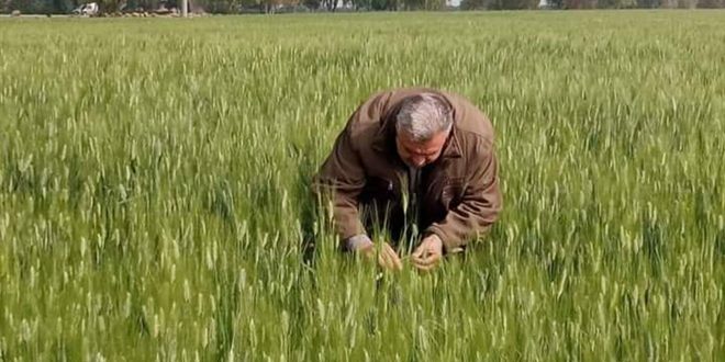 ولفت الفلاح سامي منصور إلى أن واقع القمح في أرضه الواقعة بالمنطقة الغربية والبالغة مساحتها 80 دونماً جيد جداً، ولا إصابات حتى تاريخه ويتم تشكل السنبلة بشكل طبيعي، معرباً عن أمله في استمرار انخفاض درجات الحرارة إلى ما بعد الخامس من شهر أيار للوصول إلى أعلى إنتاج ضمن وحدة المساحة.