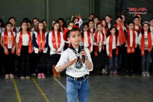 نظم فرع حمص لطلائع البعث اليوم بياناً فنياً بعنوان “فراشات الطفولة ترقص فرحاً” في الملعب البلدي بحمص، تنوعت فيه الفقرات بين لوحات فنية فلكلورية وشعر وغناء وعزف وكورال.
