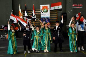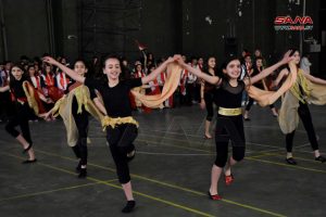 وكان للطفل الموهوب كريم حمود فقرة شعر لمحمود درويش بعنوان “سجل أنا عربي”، وتجلى جمال التراث السوري بعدة فقرات للفنون الشعبية، قدمتها فرق من عدة مدارس، وتخللتها فقرة رقص شركسي.