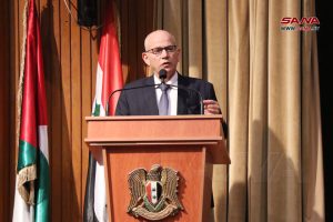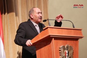 بدوره مدير عام مؤسسة القدس الدولية-سورية الدكتور خلف المفتاح استعرض المراحل التي سبقت جلاء الاستعمار الفرنسي وانطلاق حزب البعث وارتباط كل ذلك بقضايا الأمة العادلة وفي مقدمتها القضية الفلسطينية.