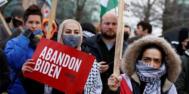شهدت مدينة سكرانتون بولاية بنسلفانيا الأمريكية مظاهرة ضد الرئيس الأمريكي جو بايدن في مسقط رأسه احتجاجاً على دعمه الأعمى لكيان الاحتلال الإسرائيلي في عدوانه المتواصل على قطاع غزة منذ السابع من تشرين الأول الماضي.