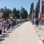 وأكد الطلبة المشاركون في الفعالية التي تم خلالها رفع العلم السوري في مقار الجامعات بتوقيت واحد وقوفهم إلى جانب أبطال جيشنا الباسل الذي يكتب بدمائه وانتمائه أعظم البطولات في حماية الوطن وصون عزته وكرامته، ويستكمل بطولات الجلاء وحرب تشرين التحريرية حتى تحرير كل شبر من أرض الوطن.