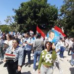 ومن أمام مبنى الإدارة المركزية في جامعة البعث احتشد طلاب الجامعة للمشاركة في الفعالية، حيث أشار الدكتور عدنان الشيخ حمود عضو قيادة فرع الجامعة لحزب البعث إلى أن شريحة الطلاب يؤكدون اليوم أنهم سيحملون الراية ويتابعون مسيرة أبطالنا.