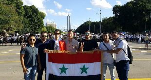 جدد أبناء الجالية العربية السورية والطلبة وأعضاء السفارة السورية في كوبا العهد في متابعة حمل رسالة الجلاء بكل أمانة من أجل عزة الوطن وكرامته.