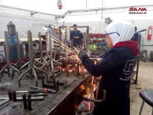 وأشارت الشابة آية البالغة من العمر 27 عاماً إلى أنها تمكنت من تطوير قدراتها وإمكانياتها العملية في هذه المهنة وتحسين دخل أسرتها من خلال عملها منذ ثلاث سنوات في معمل المعينات الحركية التابع لجمعية يداً بيد في حي مساكن هنانو بحلب بقسم التصنيع، مبينة أنها حظيت بدعم وتشجيع كادر العمل في المصنع، ما ساعدها على صقل مهاراتها وتدريبها أيضاً على آلات وأقسام جديدة لتواكب التطور والحداثة في هذه المهنة وتكون محترفة فيها وتنافس زملاءها الشباب في العمل.
