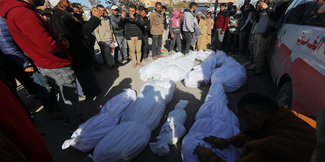 كما أعلنت وسائل إعلام فلسطينية ارتفاع عدد شهداء المجزرة التي ارتكبها الاحتلال فجر اليوم بقصف طيرانه منزلين في رفح جنوب القطاع إلى 19 شهيداً بينهم 14 طفلاً وعشرات الجرحى، وسط استمرار الغارات على تل السلطان ومنطقة خربة العدس شرق وغرب رفح، ما أدى إلى إصابة 3 فلسطينيين.