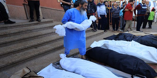 انتشلت طواقم الإنقاذ والإسعاف الفلسطينية في قطاع غزة اليوم جثامين مئات الشهداء من مقبرة جماعية في مجمع ناصر الطبي بخان يونس بعد انسحاب قوات الاحتلال الإسرائيلي من المدينة.
