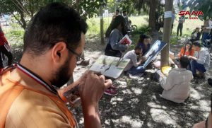 في رحاب حدائق جامعة البعث بحمص، وضع عدد من الفنانين والشباب الموهوبين لوحاتهم الفنية ضمن فعاليات اليوم الأول من ملتقى “مدانا ألوان”الذي أطلقه مشروع مدى الثقافي بالتعاون مع فرع حزب البعث العربي الاشتراكي بالجامعة.