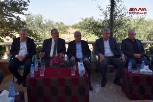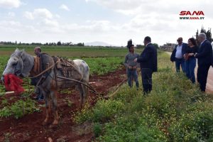 كما اطلع الوزير يرافقه محافظ حماة الدكتور محمود زنبوعة خلال جولة ميدانية على واقع حقول مزروعة بمحصولي القمح والبطاطا وأشجار الزيتون والفستق الحلبي في معردس وما حولها في الريف الشمالي من المحافظة.