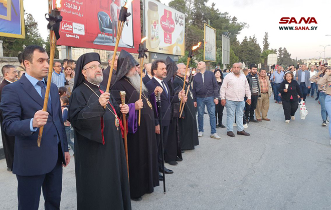 نظمت مطرانية الأرمن الأرثوذكس لأبرشية حلب وتوابعها اليوم مسيراً بالمشاعل من حي الميدان وصولاً إلى مقابر طائفة الأرمن الأرثوذكس، وذلك إحياء للذكرى 109 للإبادة الجماعية التي ارتكبها العثمانيون بحق الأرمن عام 1915.