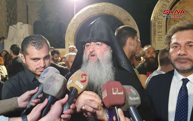 ولفت مطران أبرشية حلب وتوابعها للأرمن الأرثوذكس ماكار أشكاريان في تصريح للصحفيين إلى أن الأرمن يحيون اليوم مجتمعين ذكرى الإبادة للمطالبة بحقوقهم المشروعة، والتأكيد على النهوض من جديد رغم كل ما حل بهم عبر التاريخ أمام أعين العالم المتحضر الذي بقي صامتاً ومكتوف الأيدي كما يقف اليوم حيال الجرائم التي ترتكب بحق الشعوب المظلومة.