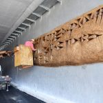 ولفت المليح إلى أن اللوحات التي استمر العمل بإنجازها بسرعة قياسية لم تتجاوز خمسة أشهر، مصنوعة من مادة الصلصال ثم وضعت بقالب من الجبصين ليصب عليها الريزين المقاوم للأحوال الجوية، مشيراً إلى أن قياس اللوحات يتراوح بين 6 و7 أمتار بارتفاع يتفاوت بين 2 و3 أمتار.