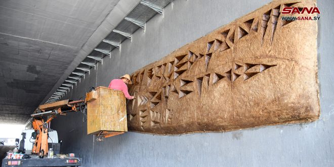 خرجت المنحوتات التشكيلية هذه المرة من الصالات والساحات لتدخل الأنفاق والعقد المرورية، من خلال ثماني لوحات جدارية زينت نفق المواساة الذي سيفتتح قريباً، مستوحية مضامينها من الحضارة السورية موثقة معالمها الأثرية التي تشكل هوية فارقة لدى كل محافظة.